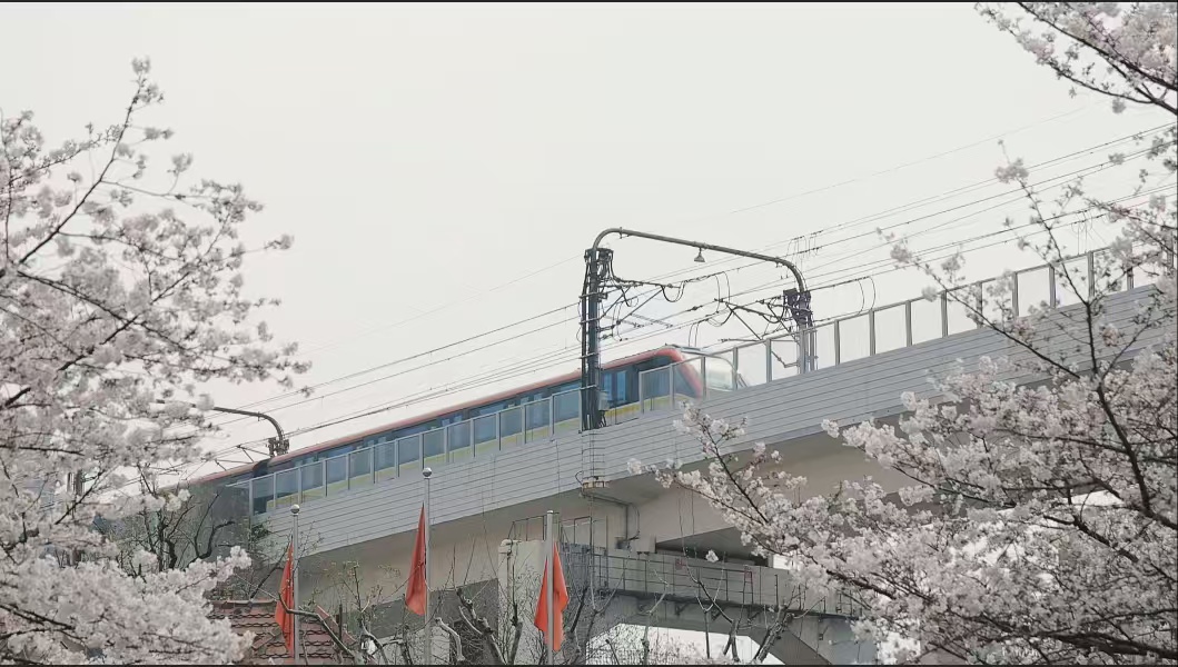 重点夸夸“开往春天的列车”宝藏机位,等3号线列车从樱花丛中缓缓驶过,快门一按就是上海春日标志性画面。