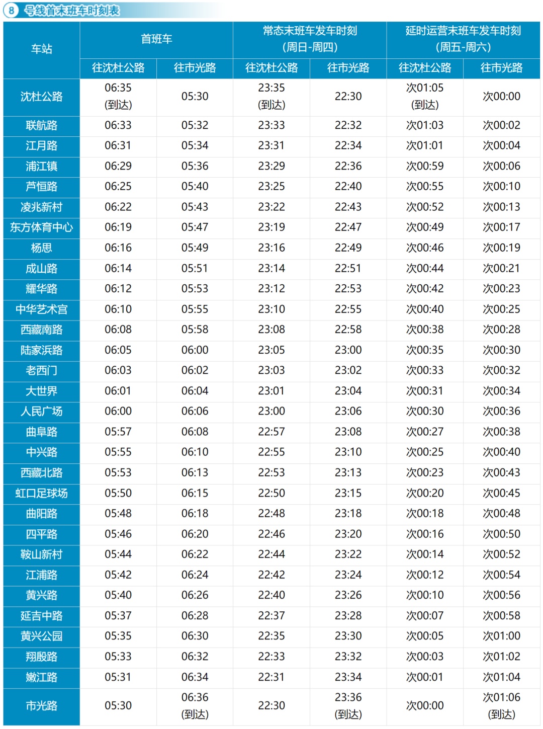 据申通地铁集团介绍,为进一步适应市域机场线客流变化,提升乘客出行体验,2026年4月1日起,上海轨道交通市域线机场联络线(简称“市域机场线”)启用新版列车运行图(←戳链接),对首末班车时间进行调整优化,较之前全天多运营30分钟。上海地铁全网首末班车时刻表也随之更新。请大家收藏~