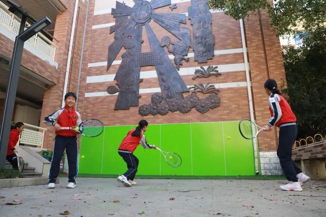 走进景东小学,你会发现,这里的每一寸空间都在为学生的健康服务。作为全国青少年网球特色学校,学校拥有两片标准的加顶网球场,同时巧妙利用走廊、墙面等“微空间”,配置了可移动式匹克球网、墙面乒乓板、AI运动吧等设施,满足学生体育活动的多样性。