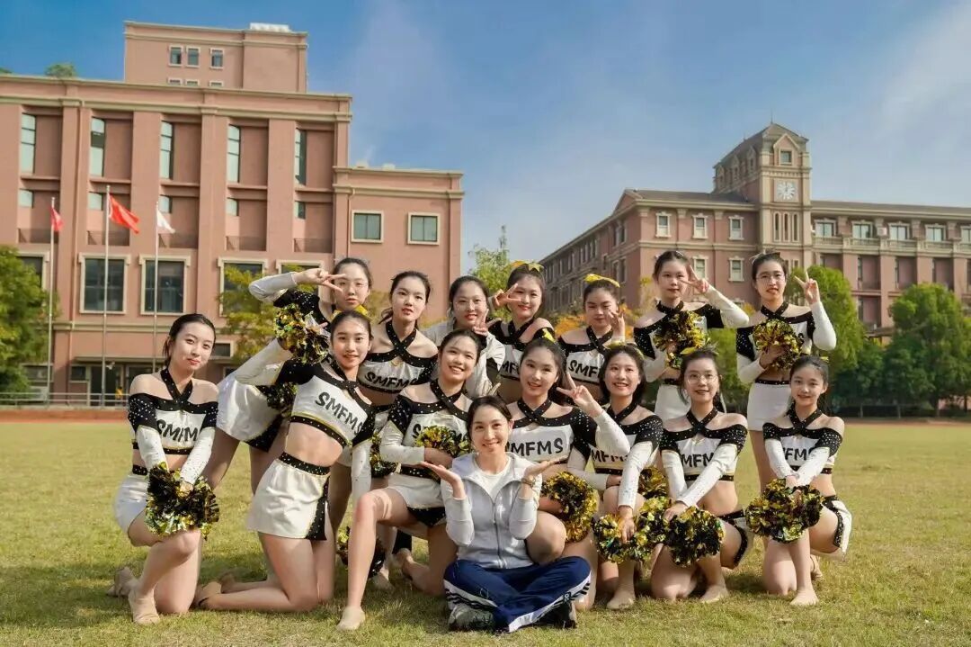 如今,啦啦操已成为上闵外的特色课程,纳入学生三年体育学习规划。每年9月举办的校园啦啦操班班赛,更是成为展现学生青春风采、凝聚班级力量的重要平台,赛事以班级为单位,全员参与、自主编排,各班结合自身特色,将啦啦操技术与班级文化相结合,既有规范技巧展示,也有创意队形设计。
