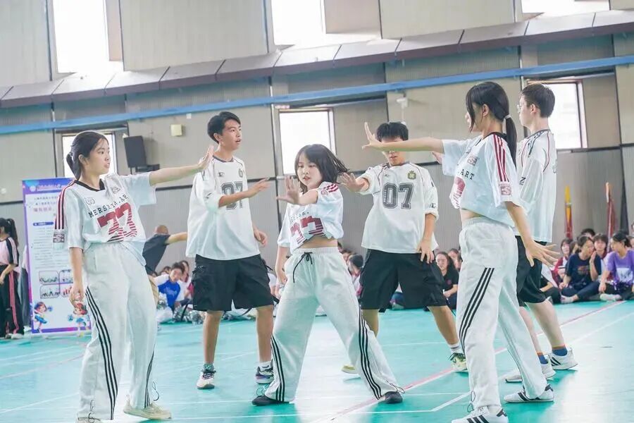 学校还组建校啦啦操队,积极参与各级各类赛事,斩获颇丰,其中包括2022—2023年全国啦啦操联赛(上海闵行站)公开少年甲组街舞规定动作第一名、2025年该赛事公开少年混合组街舞规定动作第一名等多项荣誉,用实力展现了上闵外学子的活力与风采。