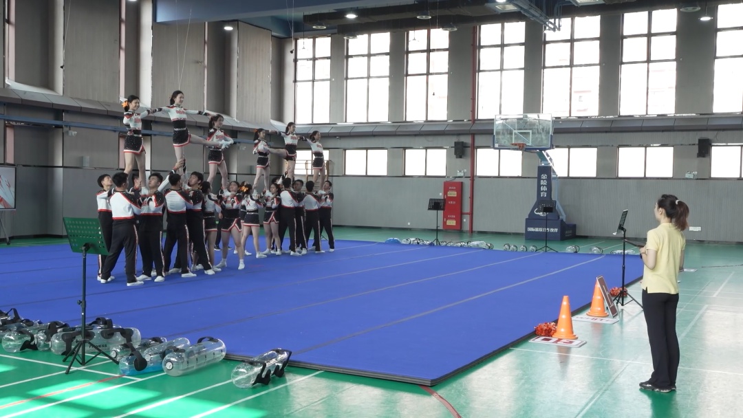 这是该校技巧啦啦操课程的日常教学场景,灵动的身影、默契的配合,不仅展现着学子们的活力,更折射出学校体育育人的浓厚氛围。