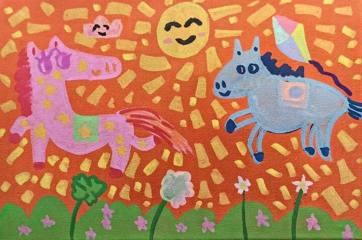简介:这幅画以马年和春天为主题,描绘两只小马欢快地在春日里奔跑,洋溢着蓬勃生机,作者希望小朋友们也能像小马一样拥有无忧无虑、积极向上的童年。