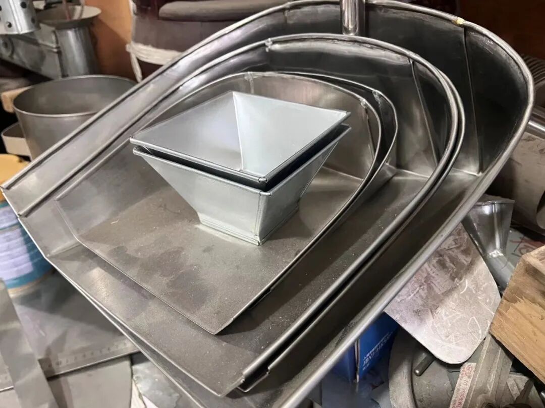 50平方米的小店里,白铁器物挂满了整面墙,小到居家用的刨刀、锅铲、垃圾桶,大到企业用的风管、水槽,应有尽有,唐俊昌就在这里手工加工白铁制品。精细的手工,离不开慢慢的打磨,画图、剪裁、切割、卷边连接,每一步都要慢、要稳。
