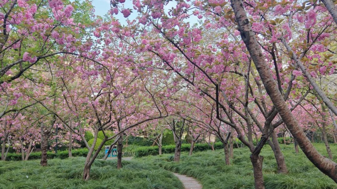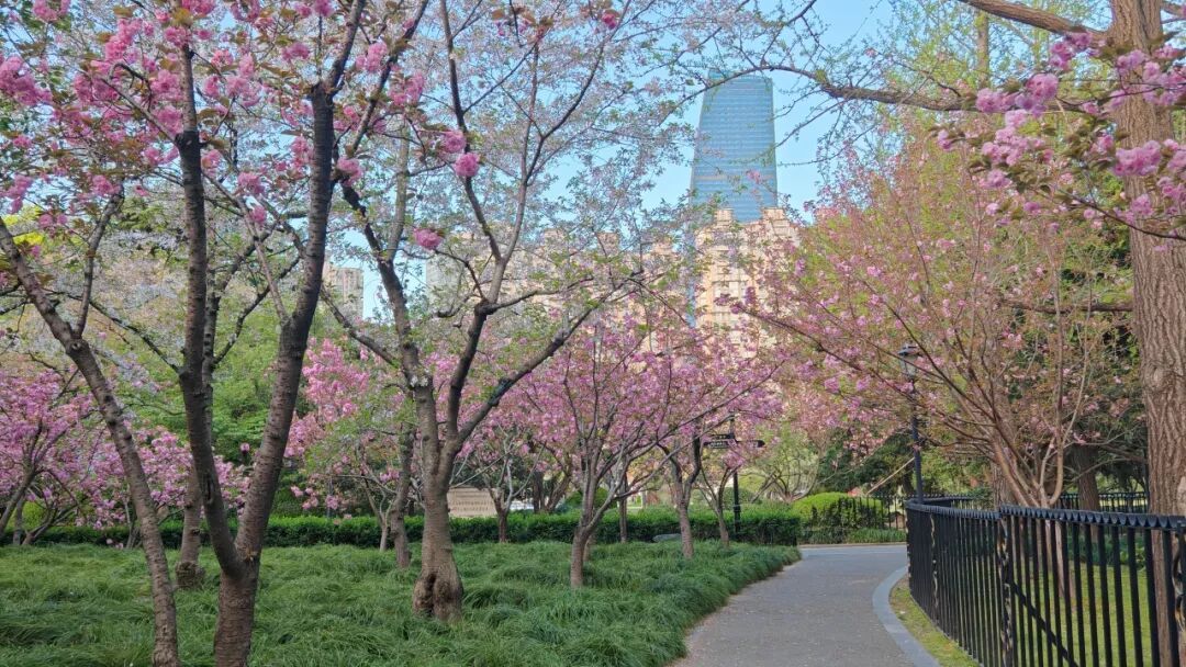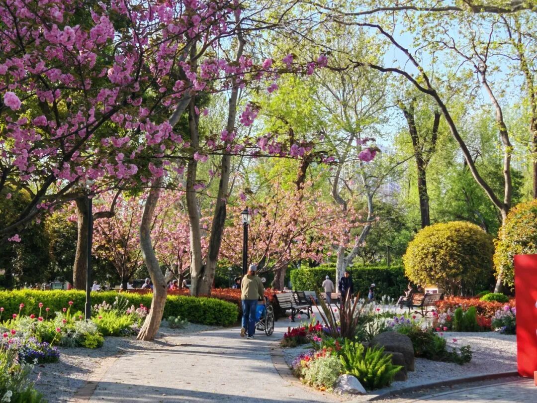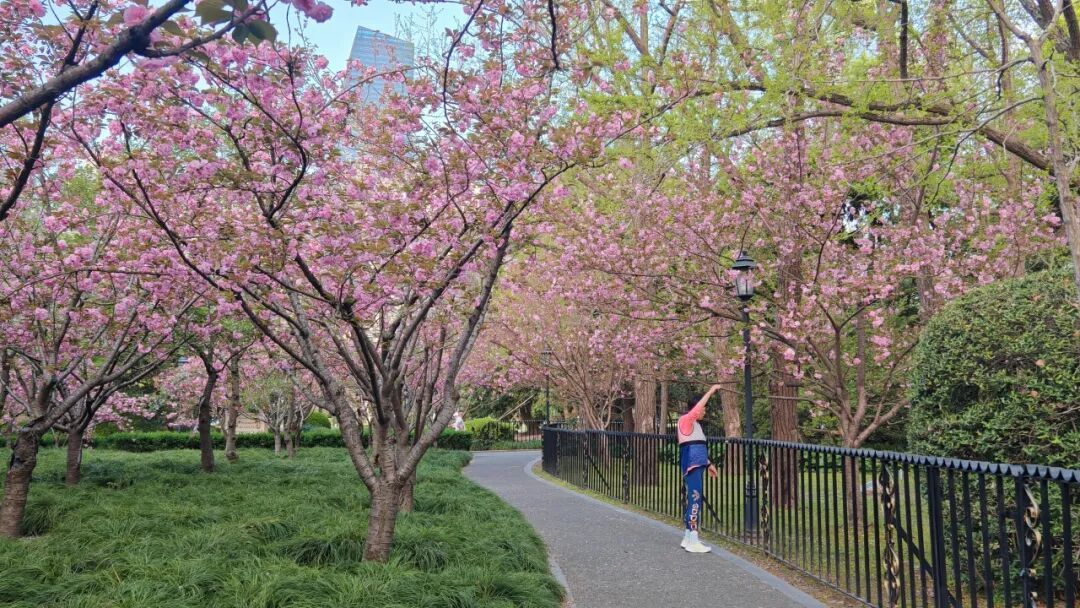 最美人间四月天。这两天,位于中山公园的“樱花林”迎来了一年中最绚烂的时刻——晚樱已全面进入盛花期,整个樱花林被层层叠叠的粉色晕染开来,仿佛一幅流动的春日长卷。