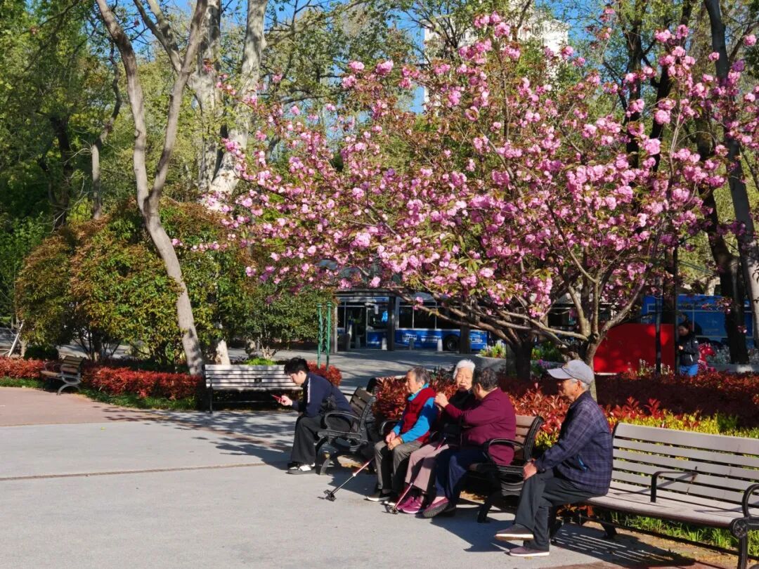 除了人气最旺的樱花林,公园内不少点位也点缀着晚樱。市民或在树下休息,或从树旁慢跑而过,那一树树娇嫩的花朵,让人真切感受到了充实而鲜活的春日气息。