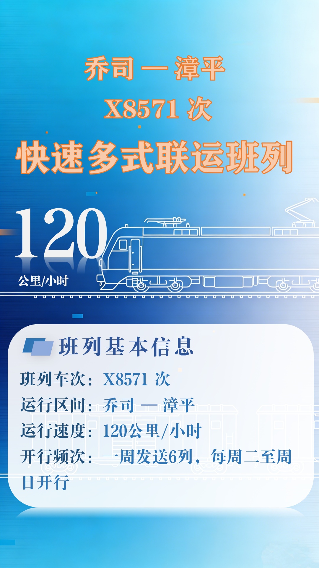 大力增开长三角多地往来闽粤多地多式联运班列,打造浙北至闽西、皖中至粤东铁路快运新线条。新图中新增乔司至漳平X8571次快速多式联运班列1列、合肥东至樟林X8573次快速多式联运班列1列,预计新增年运能39万吨左右。