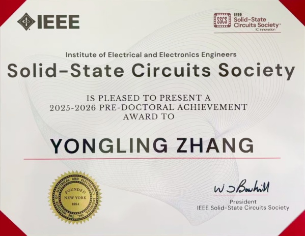 将一枚毫米级的芯片随手“种”在土里,即可实现对土壤湿度、温度等多种数据的监测,无需电池,通过环境能量采集即可实现自供电,预计使用寿命超过数十年,更可以低成本大规模布控…… 近日,在被誉为“集成电路设计奥林匹克大会”的第73届国际固态电路会议上,同济大学电子与信息工程学院2022级微电子科学与工程专业博士生张永领凭借在低功耗射频集成电路设计领域的突出学术成果与创新贡献,被授予2025-2026年度SSCS Predoctoral Achievement Award(国际固态电路学会博士生成就奖)。