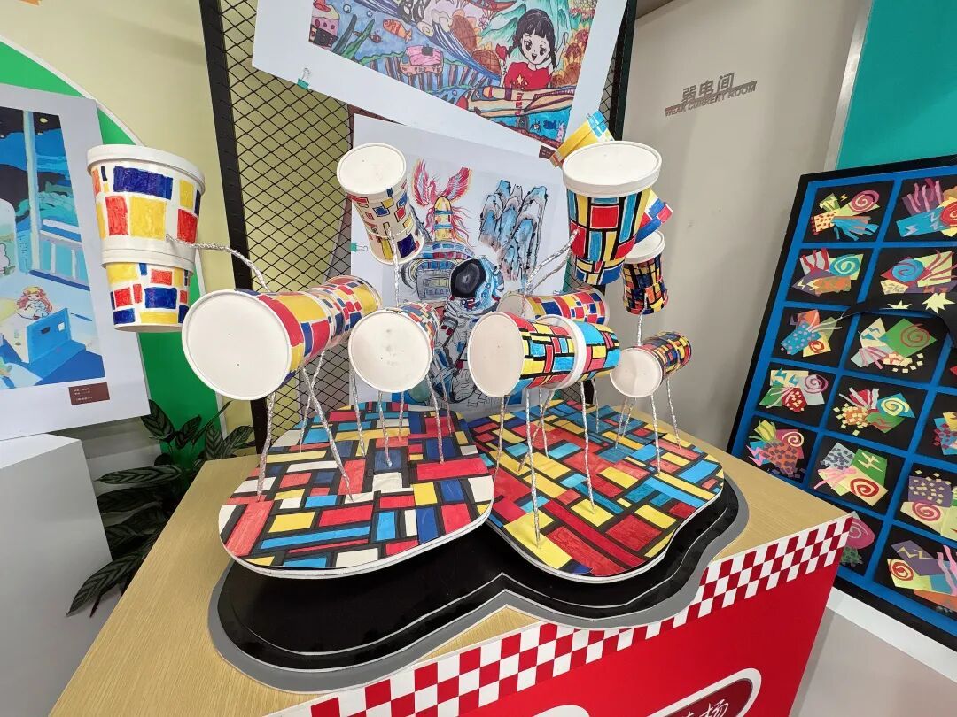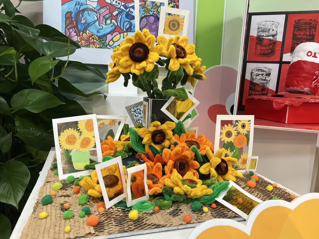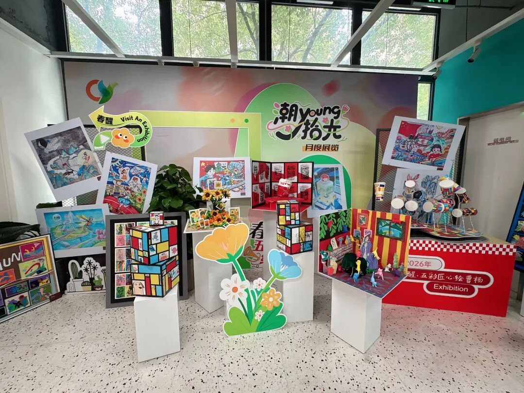 “你看这向日葵,颜色多鲜亮,花形也扭得真漂亮!” 在武宁片区党群服务中心二楼,一幅用扭扭棒盘绕而成、色彩炽烈的《向日葵》前,市民昌学兰和舞蹈队的姐妹们刚排练完,额角还沁着汗珠,目光便被这方小小的空间牢牢吸引。 这里正在举办的是曹杨新村街道“朝young时光”月度展览的首秀——“春醒·五彩匠心绘曹杨”美育主题展。水彩绘画、黏土花卉、布艺拼贴、纸杯创意……数十件创意作品整齐陈列,以斑斓色彩与盎然春意,展现孩子们眼中的春日。 本次展出的所有作品,均来自朝春中心小学“走进大师”项目化学习成果。朝春中心小学美术老师王琦指着那幅向日葵作品说:“学生创作借鉴了梵高《向日葵》的主题,用扭扭棒等材料,以平面与立体结合的方式展现蓬勃生命力,让孩子们在创作中真切感受生活之美。”本次展览由学校一至五年级全体学生参与,展出的都是各年级的代表性创作。 “在学校里,作品只是作业,在社区展厅里,就成了被邻里点赞的成果。”对学校而言,将展览从校园延伸到社区,意义非凡。朝春中心小学党支部副书记谈欣介绍,作为一所与曹杨新村共同成长70多年的“家门口的好学校”,与社区联动是一直以来的传统。“当学生的作品从校园作业变成社区展品,他们的自信心得到了极大提升。评价的人变了,他们会觉得这不仅是一份作业,更是一份成果,这让他们能更好地以‘社区小主人’的身份参与社区建设。” 居民们的反响,印证了这一实践的成效。市民杨健仔细观赏每一件作品,连连称赞:“画得漂亮,手工也精致,能看出孩子们思维开阔、想象力丰富,动手和创造能力都得到了锻炼,一代更比一代强。”居民彭少玲更是惊喜不已,她在展厅里还看到了自己外孙的画作:“看到这幅画我特别自豪,孩子们能在社区展出作品,很有意义!” 为什么要把学校美育作品搬进社区?曹杨新村街道服务办主任朱佳介绍了办展的初衷:“美育不限于校园,更应是社区共享的风景。”今年年初,社区将百禧公园与沙田学校的围墙打通,把社区运动空间延伸至学校。由此大家进一步思考:场地可共享,学校的优质成果同样能惠及居民。在社区教育联盟的集思广益下,“朝young时光”月度展览应运而生。 “春醒”只是序章。围绕“朝young时光”,街道以节气为线索、一月一主题,打造“春醒—夏耘—秋收—冬藏”四季序列。目前辖区6所中小学、7所幼儿园已全部参与,后续还将结合节假日引入老年书法与青年科创作品,将这方小空间建成全龄共享的文化展示区。同步还将依托“掌中宝”平台开设线上展厅并加入投票互动,让居民云端赏佳作;推动老幼共创、社区共创作品进楼道、融入微小空间更新改造。 “美不只在美术馆里,社区里的转角、楼道,处处皆有文章。”朱佳说,要把社区里那些不起眼的“一平方米”都点亮,让美育走进居民楼、融入日常生活中。