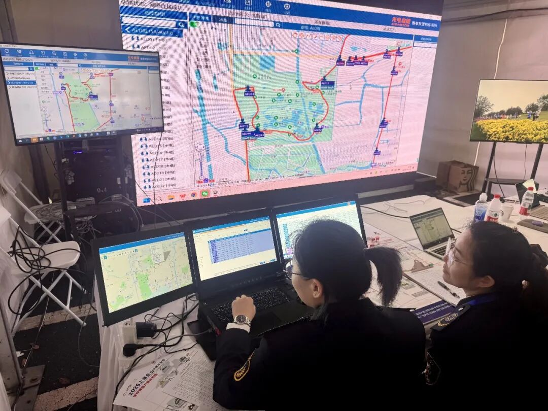 医疗指挥部内,120急救团队实时监控赛事全程,汇总各点位信息,及时调度急救车辆。