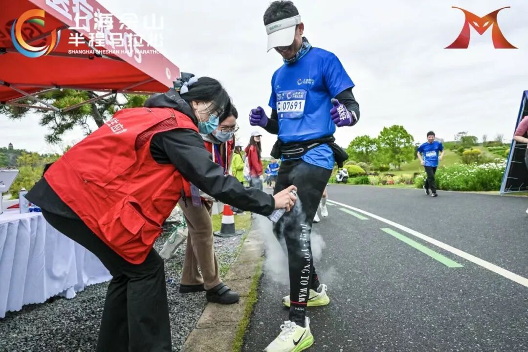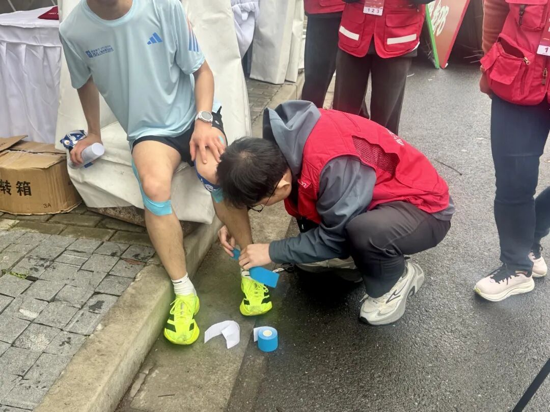 随着参赛选手陆续完成赛事,不少人放松下来后很快感受到奔跑带来的肌肉酸痛。医疗站的医务人员始终紧盯赛道上的情况,一旦发现状态不稳定的参赛者,便立刻上前询问,并使用运动冷喷帮助他们缓解不适。一名选手强忍不适含泪抵达终点,经现场骨科与康复医师快速诊断为脚踝扭伤,随即用绷带规范处置,症状及时得到缓解。