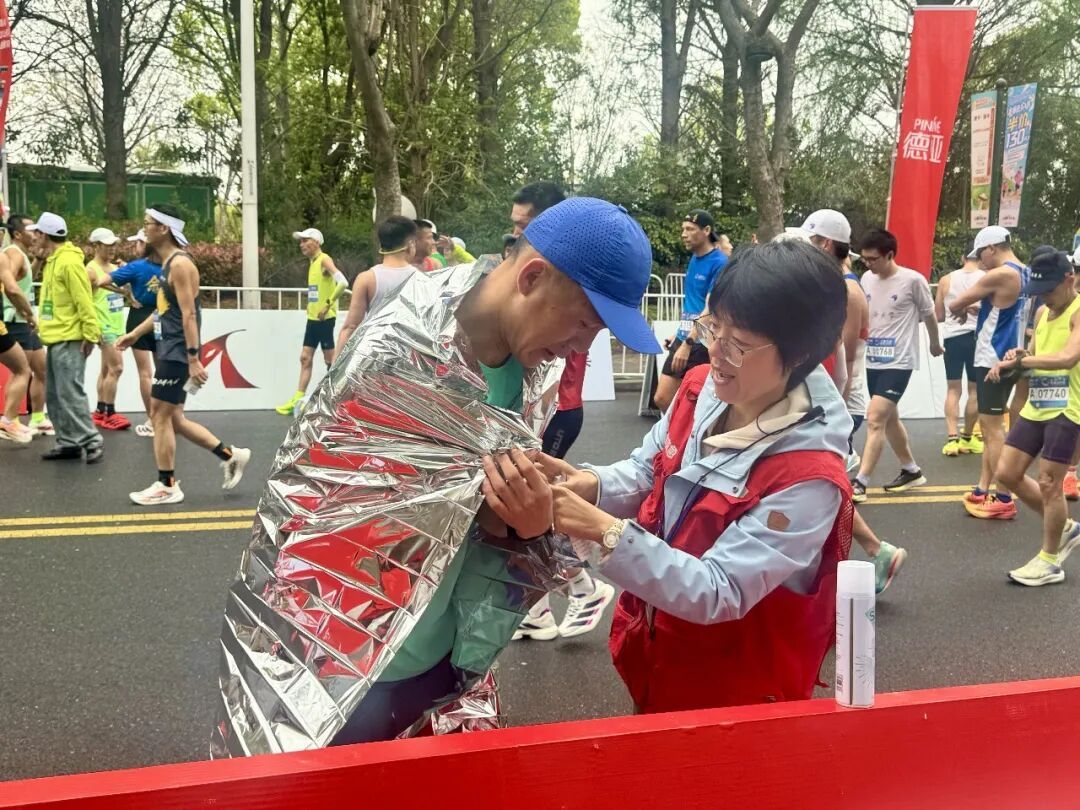由于当天气温偏低、空气湿度较大,汗液不易蒸发,给选手的体力带来了不小的挑战。一些选手赛后明显感到身体发冷,医务人员及时送上保温毯,为选手裹住身体保暖。