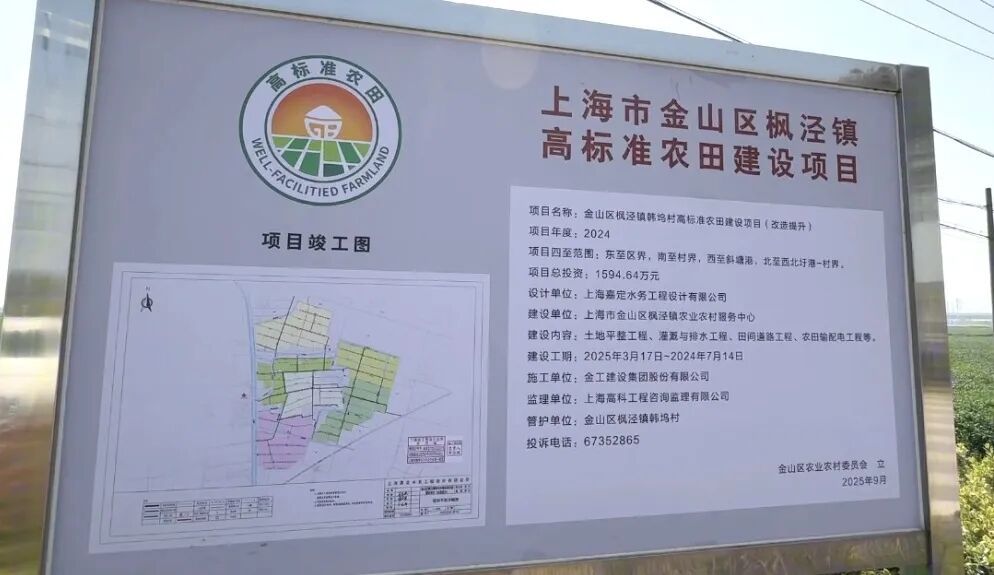 高标准农田建设是提升农业生产效率的关键举措。在枫泾镇五一村,改造工程正全力冲刺,韩坞村已呈现“田成方、路相连”的现代田园景象。