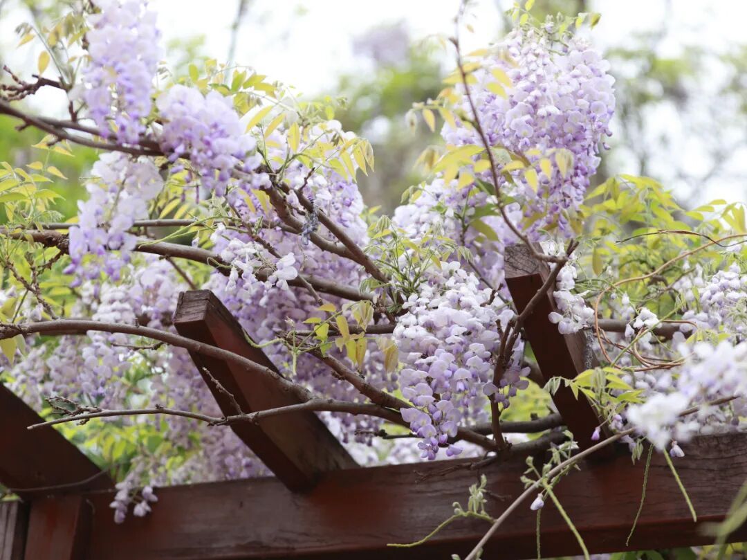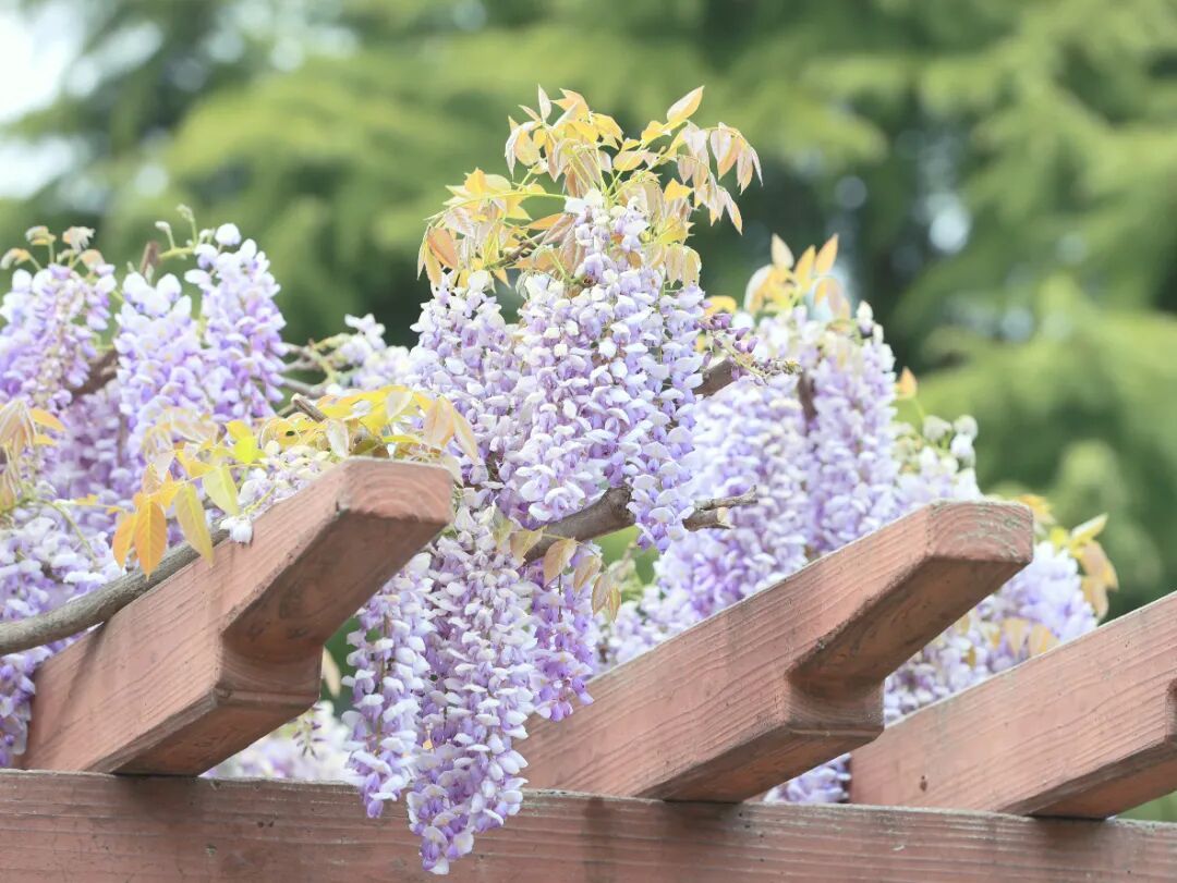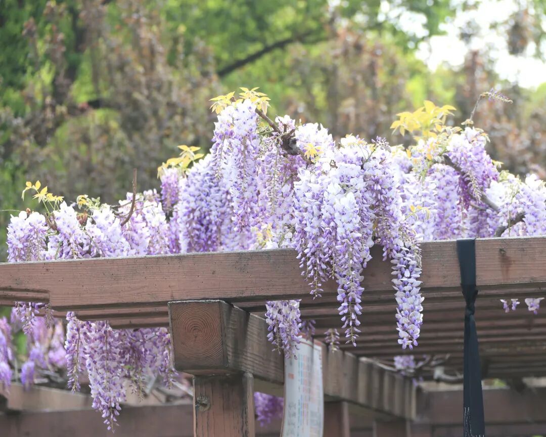 外冈镇瞿门路市民广场的紫藤吐艳,