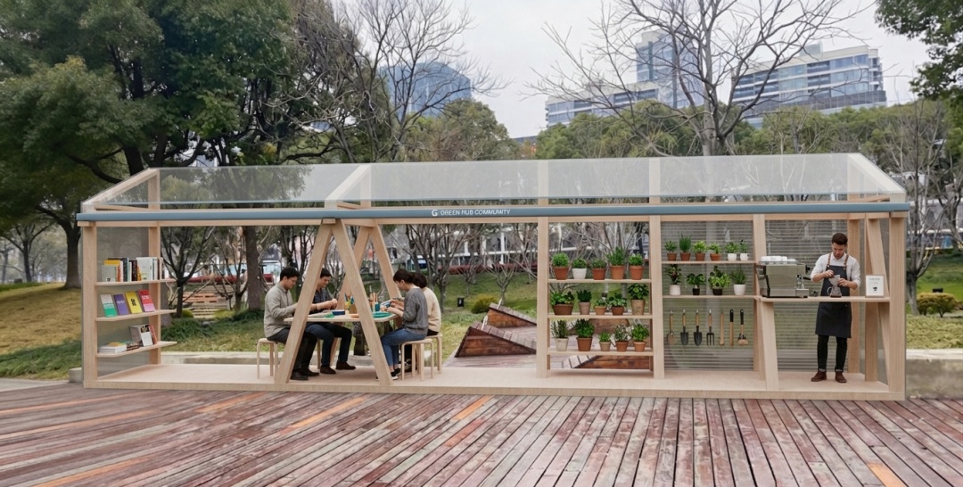 以社区花园为原型,整合太阳能供电、堆肥、雨水收集与生态种植等系统功能的城市花园快闪“实验场”。花园不仅展示生态技术,更通过活动、休憩、交流与“一日店长”等参与机制,邀请公众走入其中,体验花园如何在城市中制造生活、链接人与人、孕育公共日常,形成一个持续运转的生活循环场。