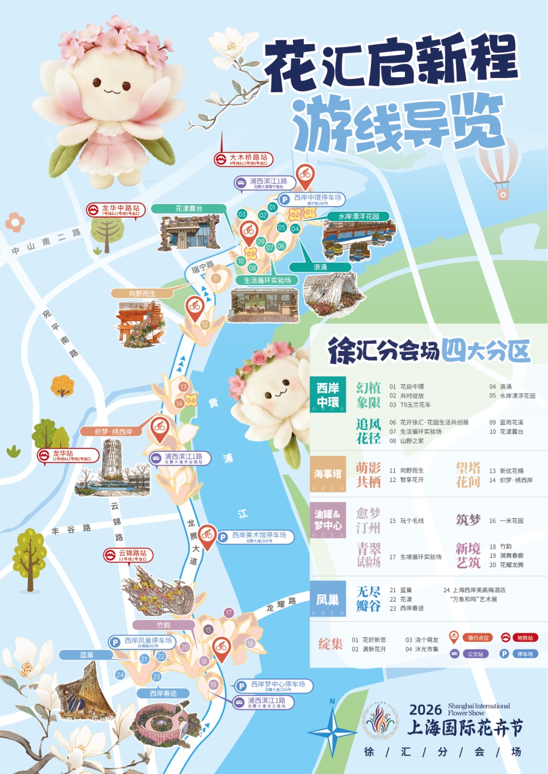 春日时节,繁花正盛。4月18日至5月10日,以“海上花开、马上精彩”为主题的2026年上海国际花卉节将浪漫启幕。徐汇区分会场也将同步拉开帷幕,以“花汇启新程”为主题,在徐汇滨江(瑞宁路-龙耀路)沿线约3公里公共开放空间、20公顷的展示区域内,邀请您共享一场花与城、人与自然交融的视觉盛宴。本次分会场设置4大分区、10大主题,提前带您一睹为快!