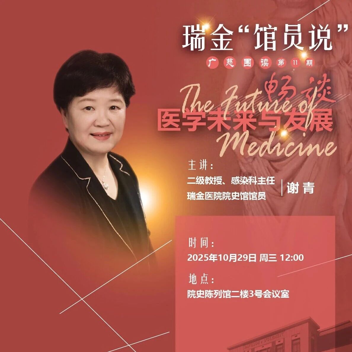 瑞金“馆员说”预告丨谢青教授畅谈医学未来与发展