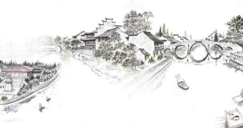 市河两岸,宅第、商铺鳞次栉比。