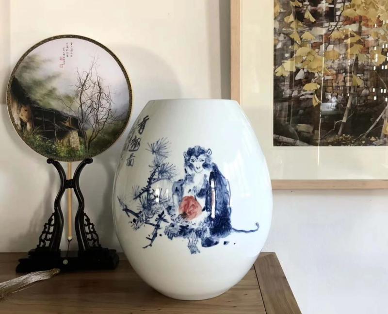 有明堂设计的扇面和瓷器艺术品