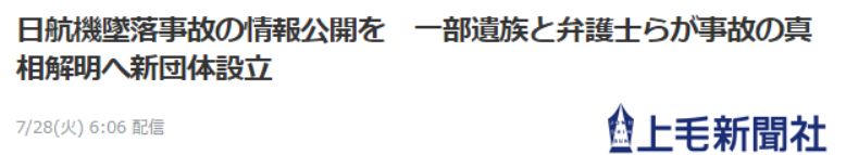 日媒:日航飞机坠毁事故情报公开,部分遗属和律师们为了弄清事故的真相成立了新组织