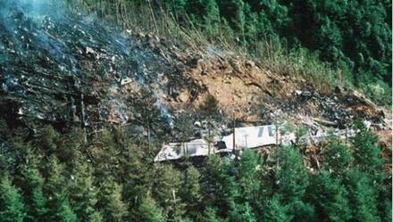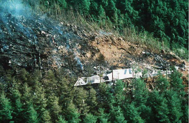 1985年8月12日,“JL123”客机坠毁现场照片 图源:时事通讯社