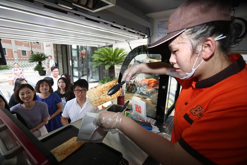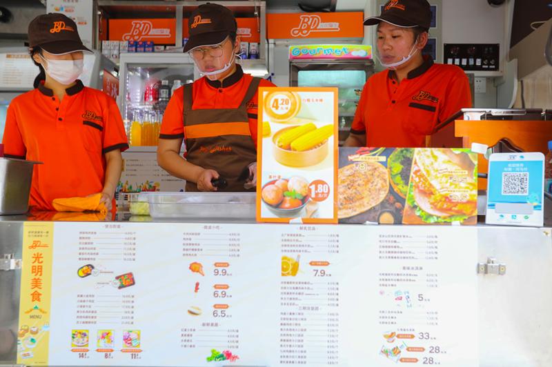 2020年8月28日,光明流动餐车在杨浦区试运营。