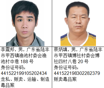 为进一步加大追逃力度,严厉打击毒品犯罪活动,严惩震慑毒品犯罪分子,7月28日,在汕尾、陆丰两级市委市政府和上级公安机关的大力支持下,陆丰市公安局对61名陆丰籍涉毒逃犯发布了高额悬赏通告,举报抓获一名涉毒逃犯,奖励线索举报人40万元人民币;对重大制毒逃犯蔡莹洛的奖励金额,直接达100万元人民币。