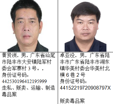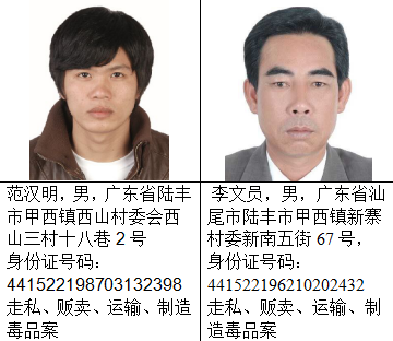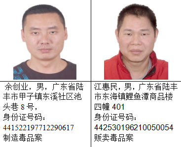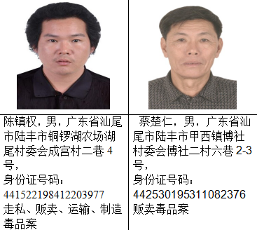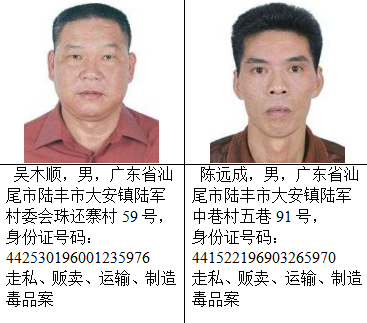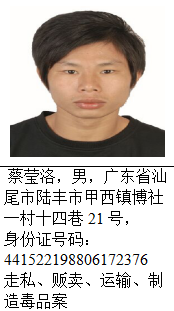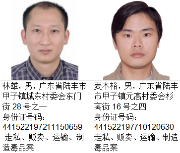 截止目前,经梳理还有蔡莹洛等56名(其中3名已故,已申报撤网)陆丰籍涉毒犯罪嫌疑人在逃,现整理出53名陆丰籍涉毒逃犯予以集中公开悬赏通缉。