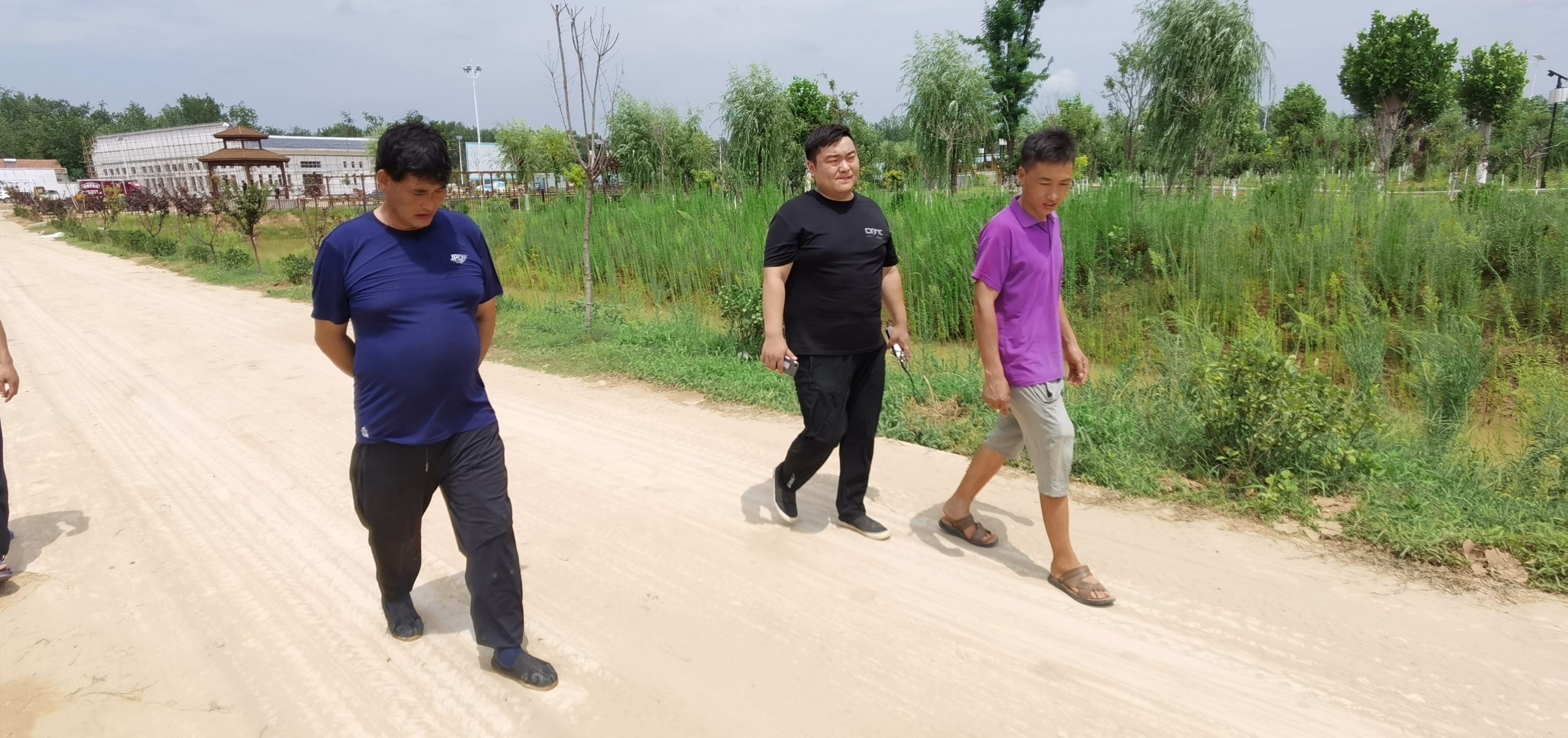 饭后,朱楼村气温达到一天最高值,36℃。朱之文和三俩友人出门散布。正午散步,这是朱之文的保留项目。毕竟烈日焦灼,尾随他拍短视频直播的人也能少些。