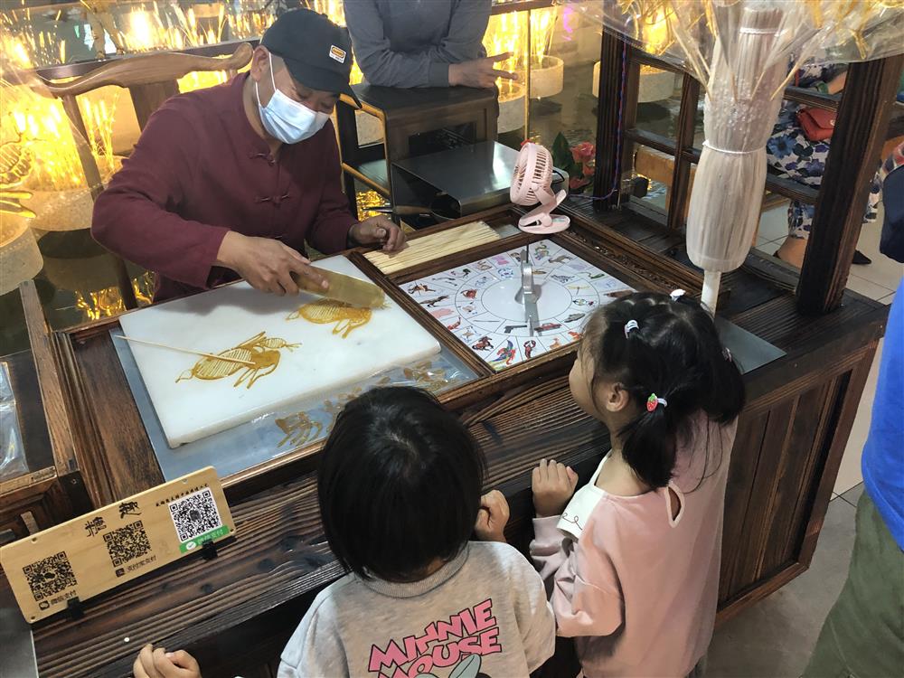 服务区内,两个小女孩正在等待传统糖画出炉。于量 摄