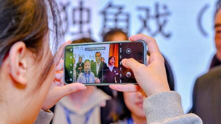 讲座最后,姚祺儿向学生们介绍海派文化代表之一独脚戏与滑稽戏艺术,从老娘舅到开心公寓,现场时不时充满着欢声笑语。讲座结束,仍有很多学生意犹未尽,一群00后的小粉丝纷纷围住姚祺儿。