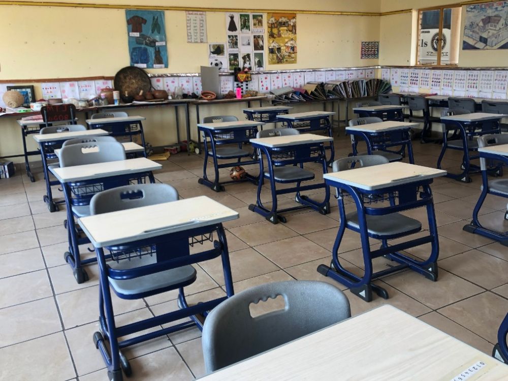 这是在津巴布韦首都哈拉雷拍摄的“妈妈的爱抚”高中的一间教室。新华社发(塔法拉·穆瓜拉摄)