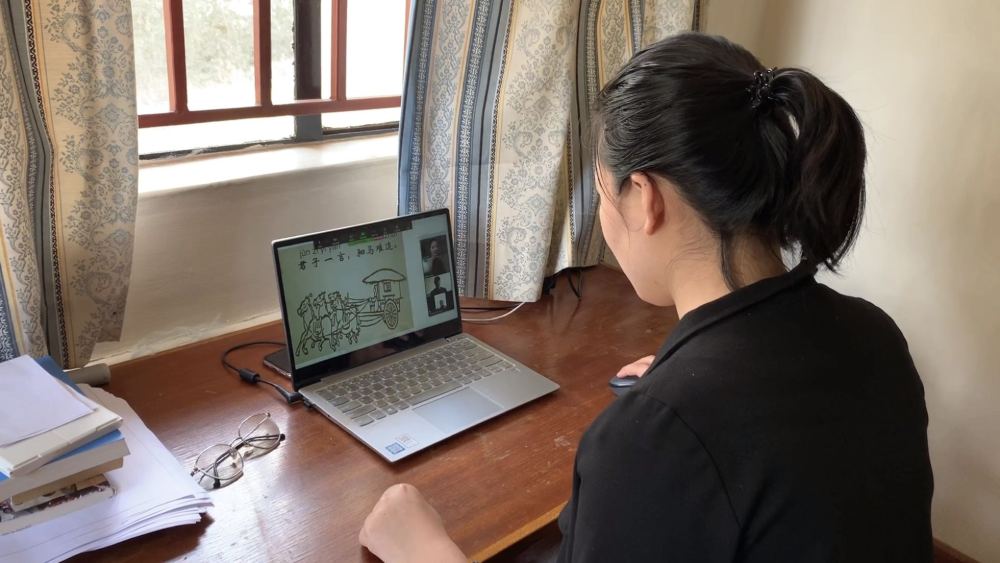 肯尼亚内罗毕大学孔子学院老师远程授课。