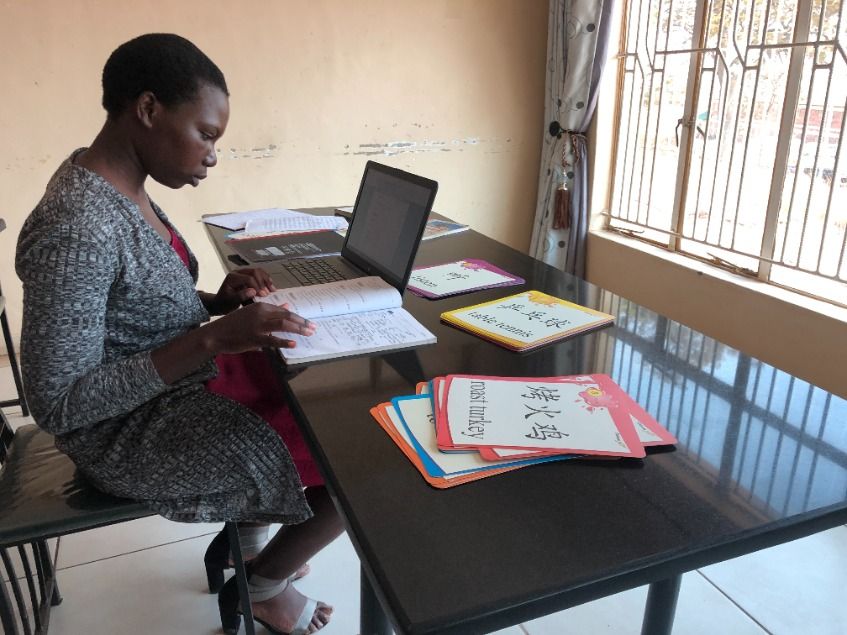 穆宗加是“妈妈的爱抚”高中的中文教师,曾在津巴布韦大学孔子学院学习中文。停课以来,穆宗加从未停止线上教学。她认为,学生在家没有学习中文的环境,有不懂的问题也很难找人请教,“所以网课对他们非常重要,我不希望他们的中文学习半途而废”。
