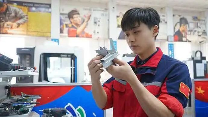接待完国赛选手参观后,陈根余悄悄伸出手上的老茧给新华每日电讯记者看,“这是以前我在老家干农活时留下的,这群孩子让我想起自己。”原来,陈根余30岁前一直在家务农,后来有机会到大学深造,从生产一线开始,他凭借过硬的先进技术在制造业钻研打拼了25年。