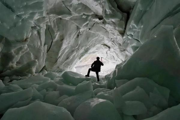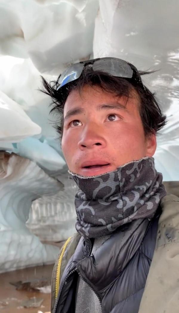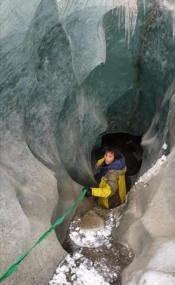 ·王相军此前发布的视频截图,显示他正在进入一条冰川的内部。