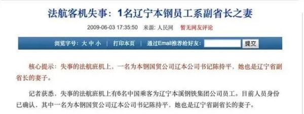 2009年6月,法国航空公司一架从巴西里约热内卢飞往巴黎的航班失事,机上228人全部遇难。遇难人员中包括9名中国公民,其中6人是辽宁本钢集团赴巴西、澳大利亚的访问团成员,刘国强的妻子陈持平是其中之一。