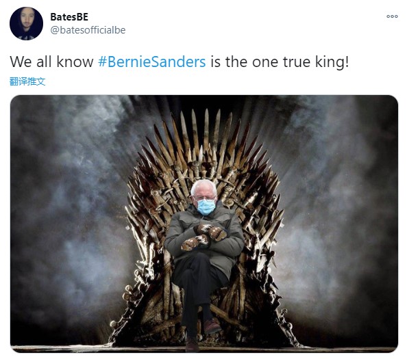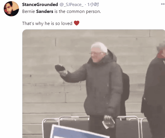 近日,桑德斯老爷子在看台上裹得严严实实,抱着双臂,跷着二郎腿,戴着朴实连指手套的形象在网络上疯传,成了国外社交平台上最火的“表情包”。这已经不是桑德斯首次引发“P图热”,网友停不下来的创作欲也再次印证了他在美国年轻人中的高人气。