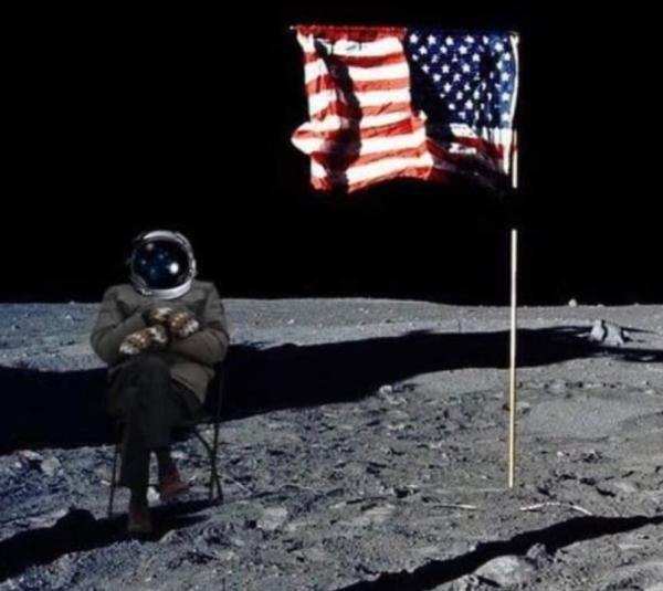 网友还脑洞大开,把桑德斯“P”到阿姆斯特朗登月照上。
