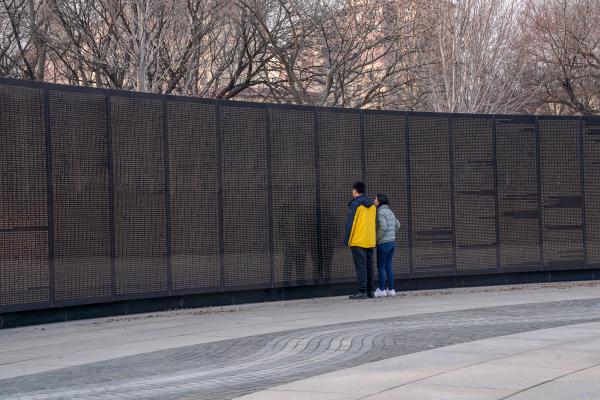 在园区北侧的下沉式烈士纪念广场上,3米高的烈士英名墙上密密麻麻地镌刻着烈士姓名。他们曾是参加革命十几年的老兵,是刚刚离开家乡十几岁的小战士,是正在读书的大学生,是领袖的儿子,是工农的子弟,是新婚不久的丈夫,是年幼孩子的父亲,是风华正茂的女兵……许多英烈在入朝时,在鸭绿江畔回望祖国的最后一眼,即为永诀。