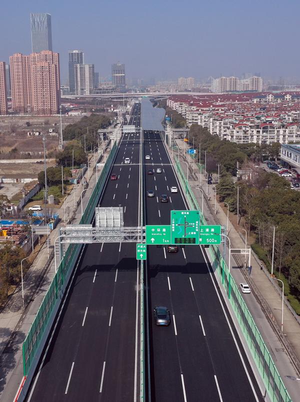 2021年2月6日,上海浦东济阳路高架建成通车。作为南北高架的一部分,济阳路高架主线从卢浦大桥一路往南延伸了8公里,串联起中环、外环,直达浦江镇。