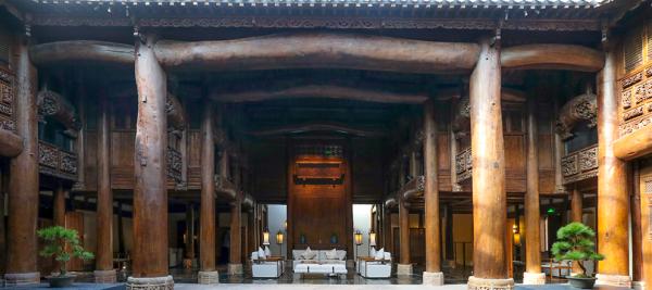 据称,这间酒店的大堂从江西贵溪原拆原建了一座进士及第府,有 500 多年的历史,所以被命名为“宰相府酒店”。