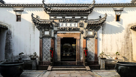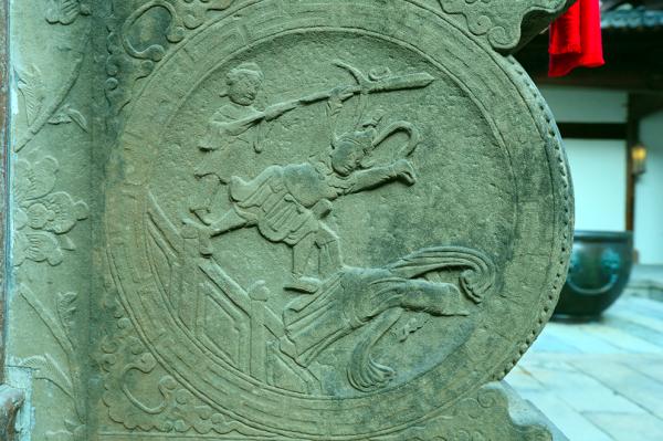 门前的石雕、每一道门廊、每一块石板、每一根线条都展现着中式建筑繁复之美。