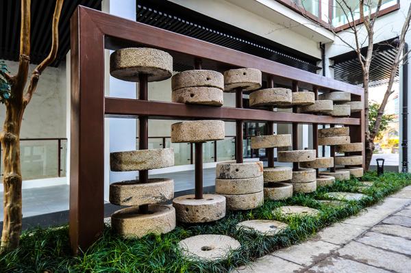 从广富林文化遗址朱雀门进入,占地面积约为40000平方米,宰相府酒店主要分为大堂、餐饮区、客房区、休闲区等,以新中式风格为主。