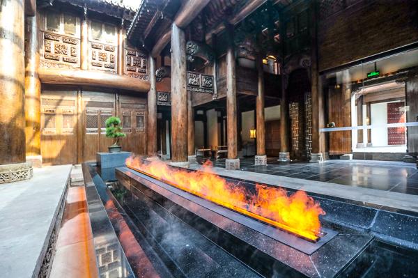 进门便会被细密的烟雾和光影构成的仿真火焰吸引。