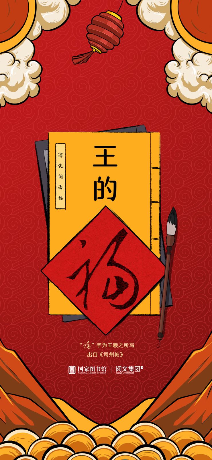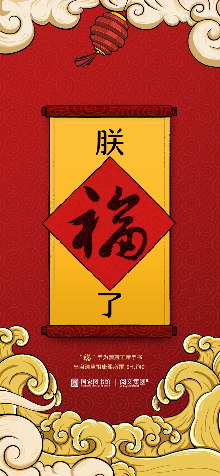春节期间,充满年味的阅读活动不止这一场。阅文集团还联动国家图书馆,探索名人大家手书福字的再创造。即把名人手书与年轻人喜欢的梗相结合,用福字的故事定制福字壁纸,在新春为读者送去具仪式感的祝福。而这些福字可能来自颜真卿、康熙、雍正或是王羲之、赵孟頫等,蕴含着吉祥寓意。比如,康熙《渊鉴斋御笔法帖•犀角铭》中就有“酒如淮,有福如酒”的美好寓意,象征着文化经典的传承。