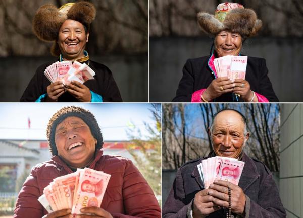 2月9日,领到分红的克松社区居民兴高采烈。(新华社记者普布扎西摄)