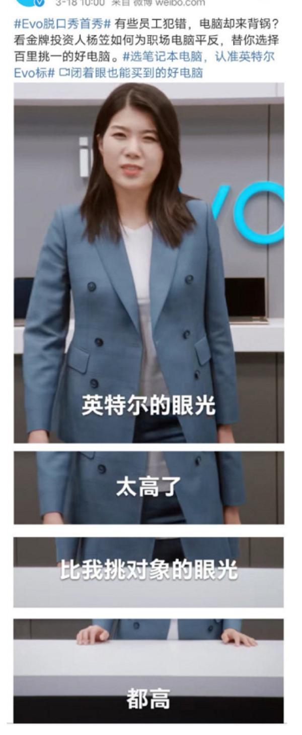 3月18日,英特尔官方微博发布了杨笠代言的广告片。杨笠在片中说,“英特尔的眼光太高了,比我挑对象的眼光都高”。该代言遭到了许多男性的抵制,有网友认为,杨笠靠“冒犯男性”走红,没资格担任以男性用户为主的电脑产品代言人。为此,英特尔删掉了杨笠代言广告片,但这一做法也得罪了不少女性用户,“谁说女性不懂电子产品?”