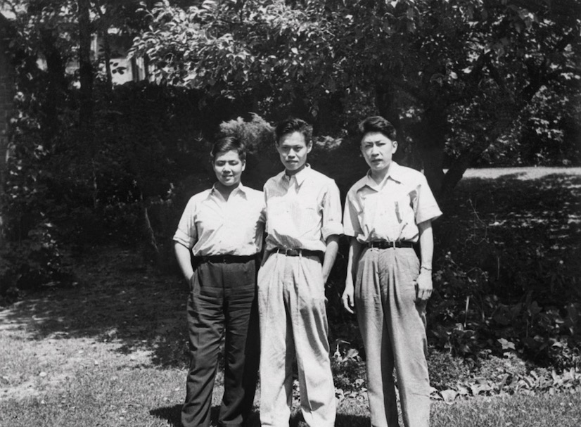 1947年,在美国密执安大学研究生院(左起:李政道、杨振宁、朱光亚)