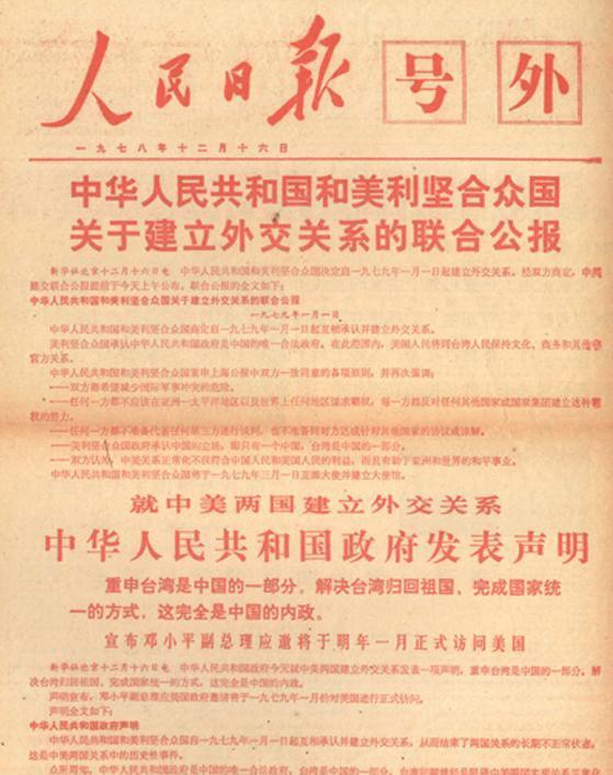 1978年12月16日,《人民日报》发表《中华人民共和国和美利坚合众国关于建立外交关系的联合公报》